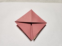 22上の三角を折り下げる 23下の部分を折り上げる 24四つとも折り上げる