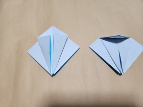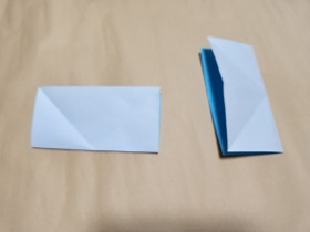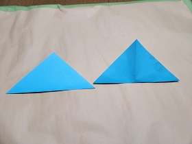 @表が出るように三角に折り一回開いてまた三角に折ります