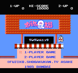 「悠久」殿による紹介です。(一ヶ月以上前) アクションゲーム。 同名漫画のゲーム化。 Q太郎が嫌いな犬等を避けながら先へ進んでいくというゲーム。 Qちゃんは空を飛ぶことが出来るが、パワーが少ないと飛ぶことが出来ない。お菓子を食べて回復しよう。 この世界では犬が異常繁殖しているらしく、いたるところに存在する。屋根の上はまだしも、電柱の上にまで・・・ |