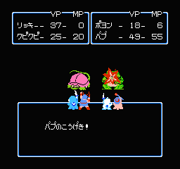 「JUNO」殿のお話(一ヶ月以上前) 敵とプレイヤーキャラが複数いた場合、主人公パーティ全員で敵1匹を攻撃するとAが死んでも残りの敵に攻撃が割り振られず、ターンが無駄になるというのはファミコンのRPGではよくあることです。