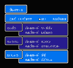 Q.最終章まで来たのですが。 「こーひーたいむ」殿の質問(一ヶ月以上前) はじめまして。こーひーたいむと言います 過去ログとても参考になりました。まだプレイしてる人がいたのはうれしいです^^v いろいろサイトを検索したりしたんですけど見つからなかったので この機会にこちらで質問させていただきますm(_ _)m (装備の値からそれぞれのキャラの最強装備?) ダブルゼータの装備 : 神獣の斧、魔獣の鎧 ゼータの装備 : ユニコーンの剣、ペガサスの鎧 見かけたサイトでは、装備時の値とお店で買えないとの紹介だけでした_| ̄|○ *もう最終章の六章なのですが、まだ手に入るのでしょうか? それと、 *カードダスすべて集めると何かもらえるんでしょうか? Re:最終章まで来たのですが。