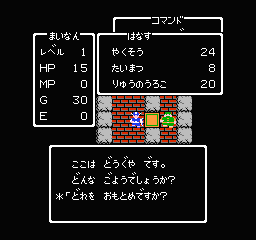 竜のうろこは、装備すると、守備力が2上がるので冒険が始まったらまずこん棒と布の服と竜のうろこの3つを買います。