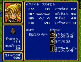 『戦闘結果を操作する』 「Justice」流一子相伝の奥義(一ヶ月以上前) 攻撃をする、もしくは攻撃を受ける時にカーソルが合ってから戦闘画面に 入るまでに、十字ボタンを押し続けることで戦闘の結果をある程度 操作することができます。 対応する方向は以下のようになります。 ・武器で攻撃する(された)場合 上:最終ダメージ-1 下:最終ダメージ-5 左:最終ダメージ-3 右:完全回避 ・魔法で攻撃する(された)場合 上:最終ダメージ-1 下:最終ダメージ-5 左:最終ダメージ-3 右:必殺の一撃 尚、デーモンブレスやプリズムフラワーのレーザーなどにも魔法として 同様の効果が期待できます。 但し、この裏技を多用し過ぎるとゲームとして非常につまらなくなって しまうので注意が必要です。 『Re:戦闘結果を操作する』