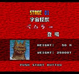 SFCでも初期の頃にでたこのゲームですが、一番感動したのは怪獣達の鳴き声の忠実ぶり。ジャミラとかバルタン星人、ゼットンとかSFCってすげーと思いました。