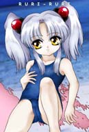 ■「スクール水着のルリルリ」 アンケートで一番リクエストが多かったキャラ。 このあいだ16歳バージョン見ました。正しい成長ですね(体型的に)。 >こちらも不思議な魅力があります(^^)もの寂しげな表情や背景とスクール水着・・・ やはり大きな瞳が印象的ですね。 |