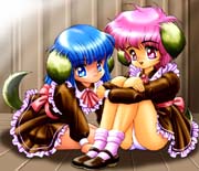 「わん娘おすわりの図」 ONOE's Homepageキジルシさん 作品の綺麗さでは既に皆さんご存じかと思います、キジルシさんのHPのマスコットの2人です。いあこのふたり可愛くってお気に入りなんです(^^)同人作品でもぱんつ作品率は高いのですが、HPでの作品も綺麗なぱんつCGが多いです。 (この作品は現在はHPにUPされておりません) |