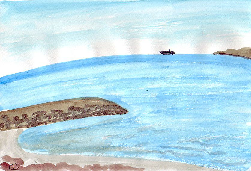 梅雨の中、たまたま晴れの時、いつもの海にスケッチにでかけました。いつ来ても自然の海は美しいですね。