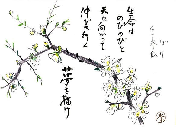 木瓜(ぼけ)の花が美しい。この頃、絵を描けるようになってきた。