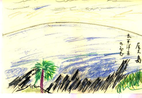 美しい屋久島の海 屋久島の東は太平洋、西は東シナ海、この海を眺めていますと、その広大さと美しさに心ひろびろとして、内なる力が湧き出てくるのを覚えますね。ああ自然は何と美しいのでしょう。島の高台から四方の海をながめますと、宇宙は丸い、地球は丸いということを実感しますね。