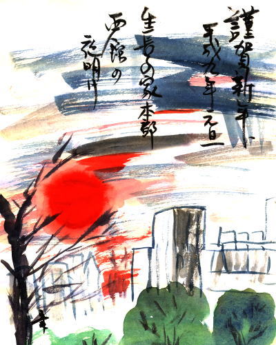 この絵は平成9年のお正月頃に東京原宿にある生長の家本部の西館に泊まって、