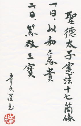 ますが、その第一ケ條「以和為貴(和をもって貴しとなす)」と第二ケ條「篤敬三寶