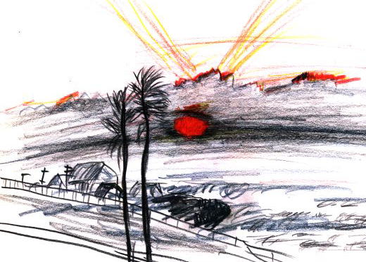 古里に帰りて朝日の昇るを観る。 美しきこと限りなし。なつかしきことこの上なし。太平洋の彼方にさし昇る太陽は僕の人生の夜明けを告げるかの如く、また語りかけるかの如く、空と海との境もとどめず、ただ光りを発して昇る。嗚呼美しきこと限りなし。