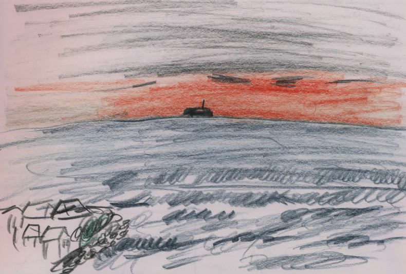 太平洋に夕陽が沈む。彼方の空が赤く染まっている。波静か。この光景を僕は何回見てきたことか。70年前にも見て感動したことがある。海は美しいものだと70年前にそう思ったことがある。子供心には「美」は特別の感懐を覚えるものらしい。理屈ではない。大自然の美だ。人の生命が大自然の生命に感応したのであろう。子供の頃のその感応は70年後までも自分の中に残っている。美しい! 限りなく美しい! 美しい夕陽の中に自分がとけ込んでしまうような感じがする。古里は美しい、嗚呼!