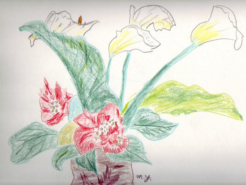 午前10時 事務所の室温は 32度C 涼しい風が 吹き抜けて行きます 今日から しばらくは このHPの絵は だいぶ以前に描いた絵を 載せることにします なにしろ 大きめの画帳ですので 絵がはみ出して 一部分が 載らないこともあるでしょう。