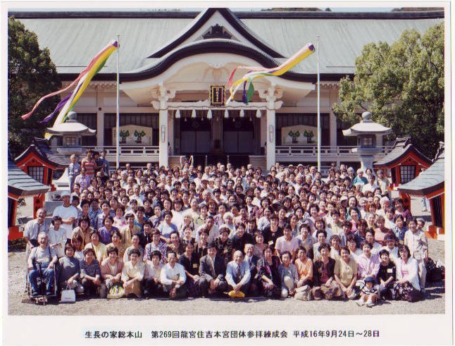 なつかしの総本山 団参 記念写真 静岡教区と愛知教区 みんな にこにこ 此処天国 ああ嬉しいなあ 楽しいなあ 素晴らしいなあ 住吉大神さまは 私達を なごめてくださる 浄めてくださる こんな美しい世界が 他に何処に あるでしょうか 顔 顔 顔 その笑顔は 正に 天国の顔ですね ありがとうございます ありがとうございます。