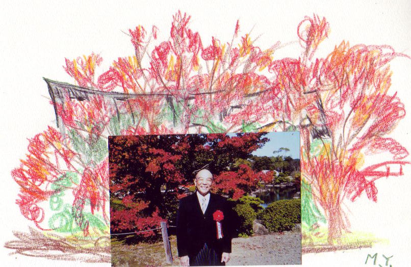 総本山金龍湖の紅葉があまりにも美しいので、スケッチしていましたら、山形県の岡正章先生がカメラを構えて私の写真を撮って下さいました。その写真をスケッチの上に乗せて、ここに掲載してみました。スケッチは下手、写真はほんものです。ここに写っている人間もほんものです。人生って楽しいですね。