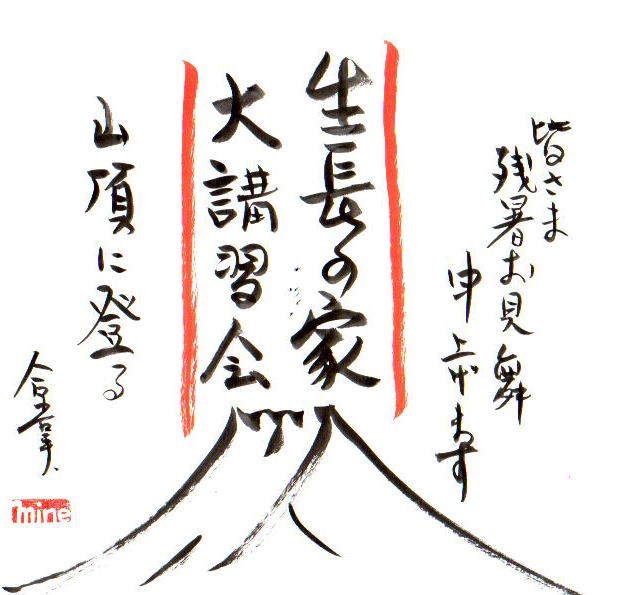 皆様 このすばらしい生長の家講習会に是非お出で下さいますよう お待ちしています。人間神の子の眞理が説かれ、現代の地球環境保全のことにつきましても説かれ、且つ色々な面で国際平和をもたらすための 現代人の生き方が説き明かされます。また現代教育の根本につきましてもわかりやすく説かれます。
