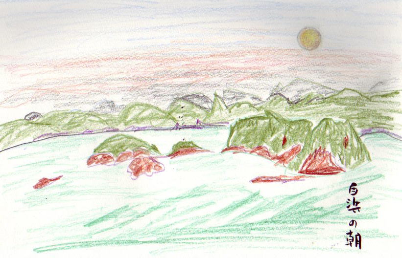 白浜の 夜明けの海は 美しく