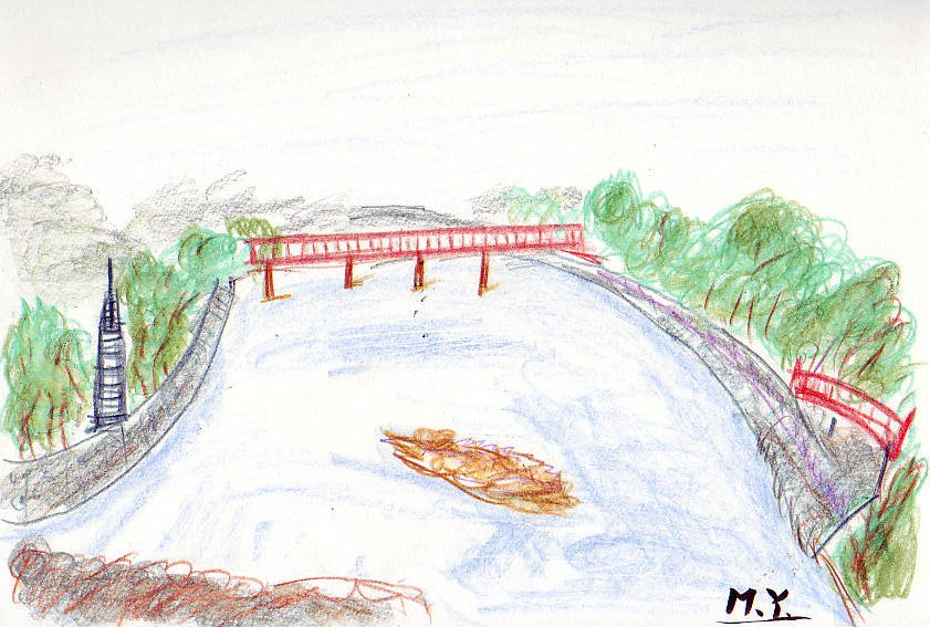 さらさらと 流れも清き 宇治川の 岸辺に寄りて ながむれば はるか彼方に 架かる宇治橋 赤き姿の その美しき。 川辺に茂る 木々の緑葉は 流れてやまぬ 水流の 音と混じりて 音楽の 楽譜にも似て 視る人の 心を潤し 時を忘れて たたずむは吾れ。