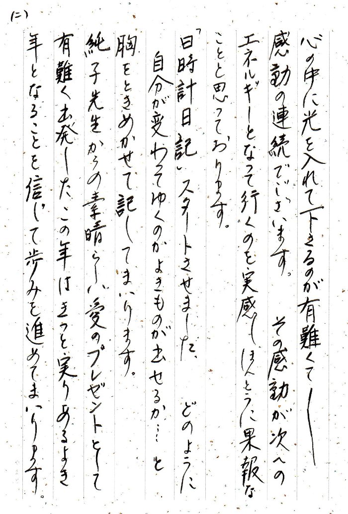 純子先生からの素晴らしい愛のプレゼントとして 有難く出発したこの年は きっと実りある よき年となることを信じて歩みを進めてまいります。