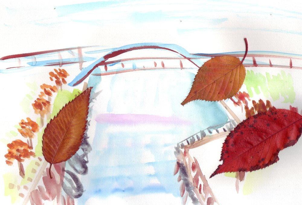 秋の空 見渡す限り 美しく 描く絵の上に 散る落ち葉あり