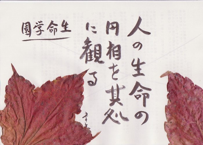 生命の実相を学ぶ 生命学園 其処に神の子の 真の姿がある 美しきこと 限りもなし 嗚呼 妙なる哉 神の子よ あなたのその笑顔は 観音さま そのままにして 父も母も ただ有り難く おろがみまつる ありがとうございます ありがとうございます。