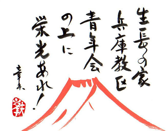 生長の家青年会 兵庫教区大会 大成功 朝日の昇る 勢いで 青年会は 伸びて行く 万教帰一の 御教えを 世界中の 人々に 日本中の 家々に 伝えんとして 情熱を 燃えたぎらせて 進み行く 嗚呼偉大なるかな 生長の家青年会の上に 神の栄光あれ!!