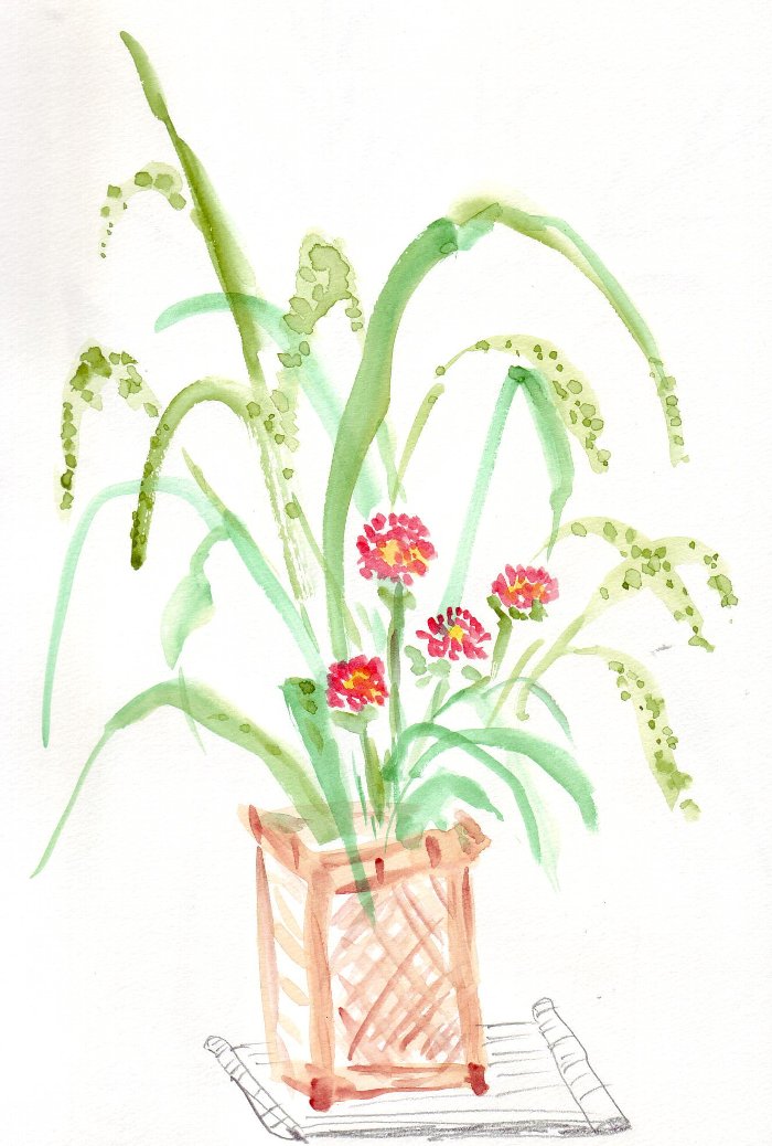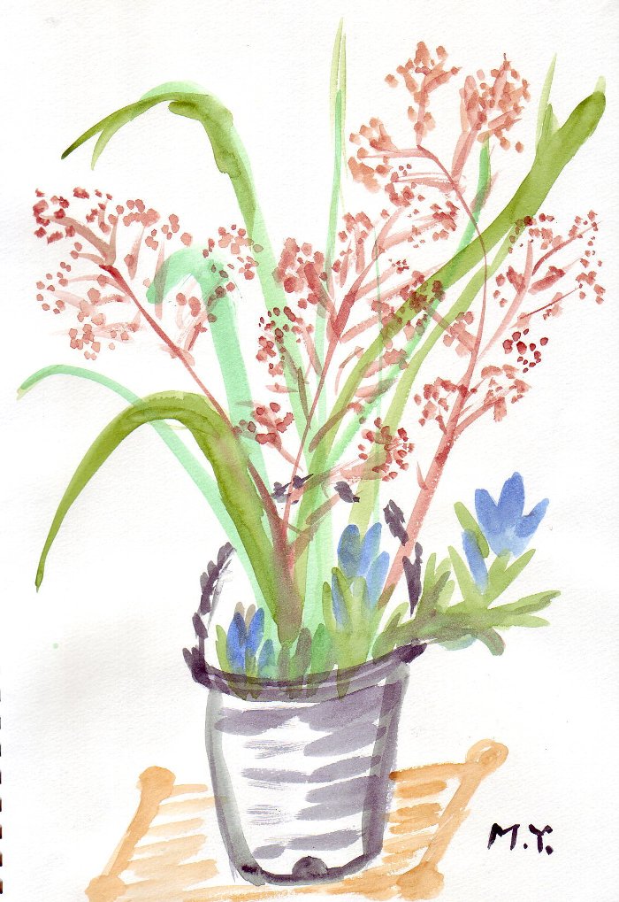 僕は 姫路の 白鷺道場へ行きます。 この絵は 一年ほど前に 白鷺道場の 控え室に 飾ってあったのを スケッチしたものです 美しいですね 絵ではないですよ この花ですよ 絵の奥にある 本物の花が 美しいのですよ すばらしいですね いのちの花は。