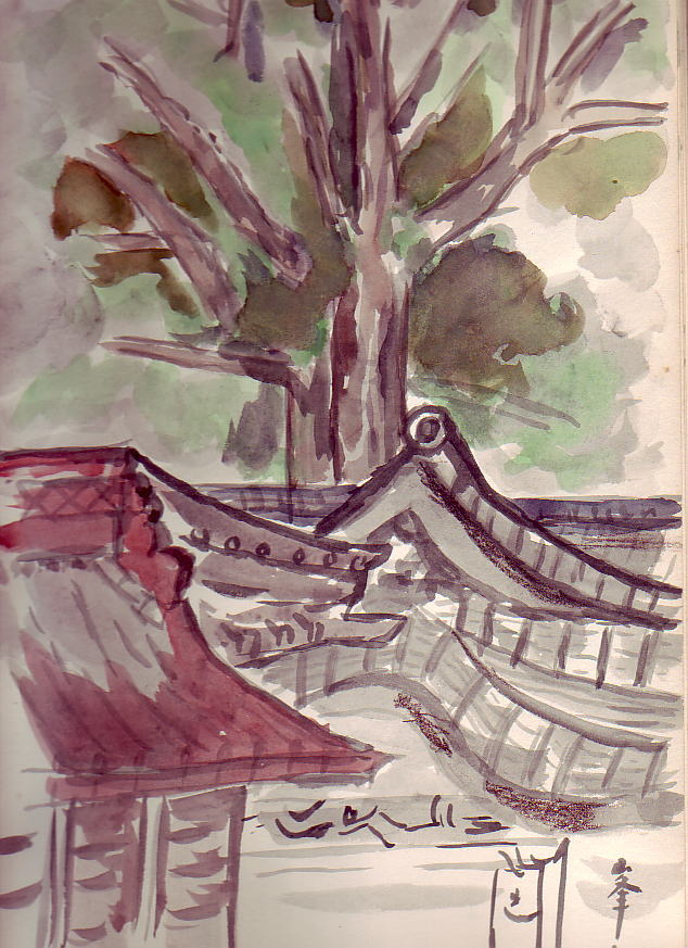 5月7日(40年前に参拝し描いた河口湖近くの浅間神社)