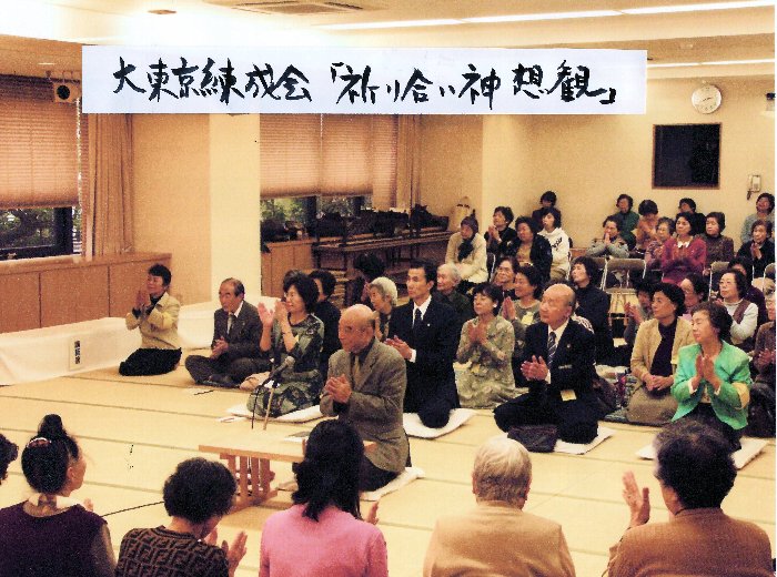 平成20年1月11日・12日・13日、盛大に大東京新年練成会が開催されました。感動感動の新年練成会でした。参加者合計588名でした。本当に素晴らしい練成会でした。 この写真は第2日目の「祈り合い神想観」の後、祈りを受けた信徒さんの感想発表の模様です。約40名の人が祈りを受け、約100名の人が祈ってあげました。感動的な祈り合い神想観でした。