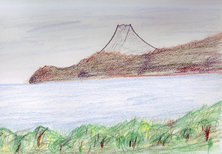 美しき 海の彼方に 富士の山 白きすがたに 心なごみて