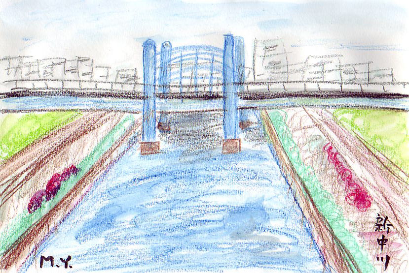 東京の 新中川は 美しい 自転車を停め 絵筆をかざす 空晴れて 町の真中を ひたすらに 流れる川に 心うばわる 人生の 美しき時 そのままに 絵筆をとりて 描くぞ楽しき