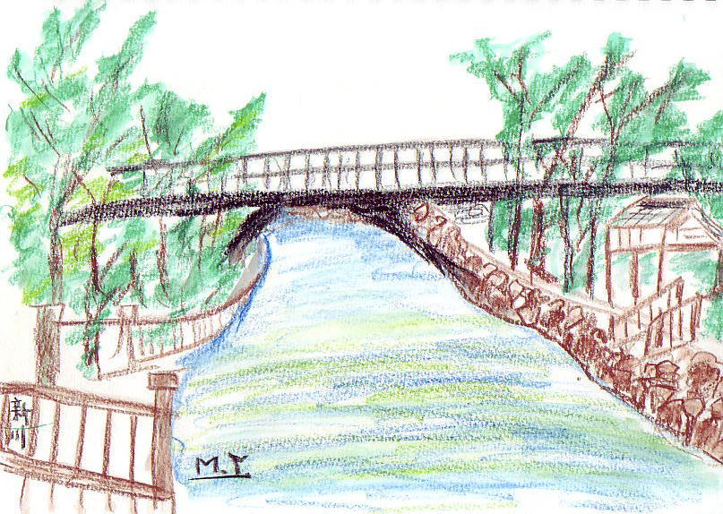 江戸川の 新川(しんかわ)の水 清くして 流れを観るに 心清まる 新川の 清き流れは 何処より 来れる水か 心清まる 清らかな 流れを観れば 立ち止まり 絵筆をとりて 描くぞ楽しき