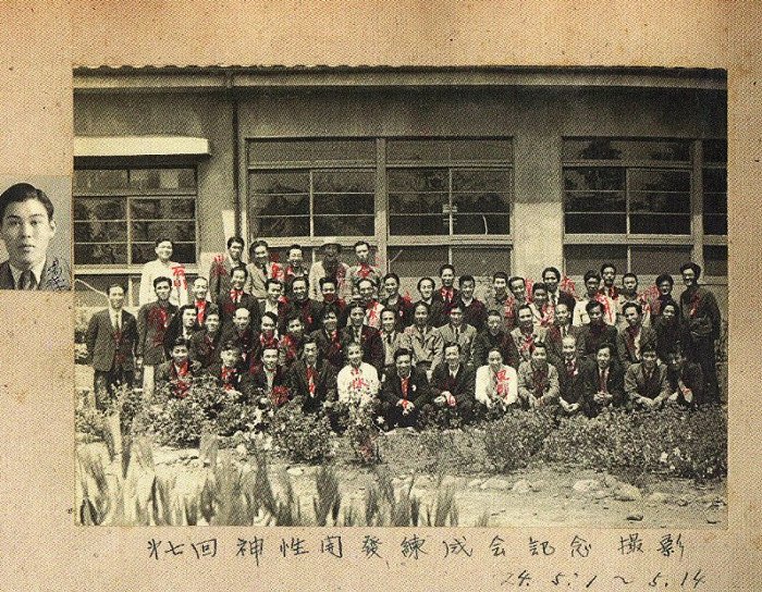 考えてみれば私自身も、今から60年前の昭和24年に、飛田給の練成を受けました。感動々々の練成会でした。私の人生の根本を此処練成道場で確立させていただきました。下の写真は60年前の記念写真です。前列の真ん中付近にしゃがみ込んでいます。(昭和24年5月1日ーー14日・第7回神性開発練成会記念写真)この写真は男性だけです。女性だけの写真も同じくらいの人数で別にあります。