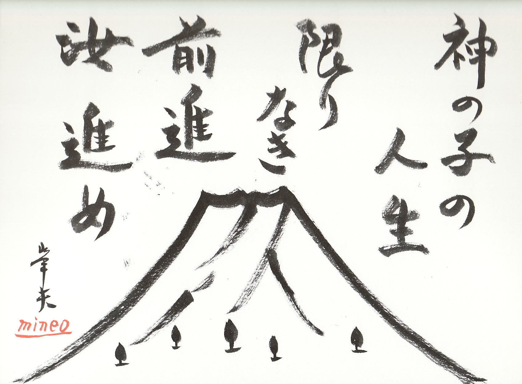 汝、日本男児として生まれて来たのだ。男らしく勇敢に人生を前進せよ。あの聳え立つ冨士の山を観よ。美しいではないか。限りなく永遠に其処に聳え立っている。