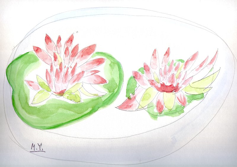 花を見ると絵に描きたくなる。何故か。美しいからだろうか。花だけではなく、景色でも目に心に美しく写るものは、どういうわけか絵に描いてみたくなる。描いた絵を見て、上手だとは少しも思わないが、自分で納得するから不思議だ。 ここで考えた。人生て何だろう。お前の人生は美しいのか。心に美しく感じられるお前の人生なのか。ううーーーん。何とも言い難い。然し100%ということはない。 こんなことを考えていたら、急に絵が描きたくなったから不思議。