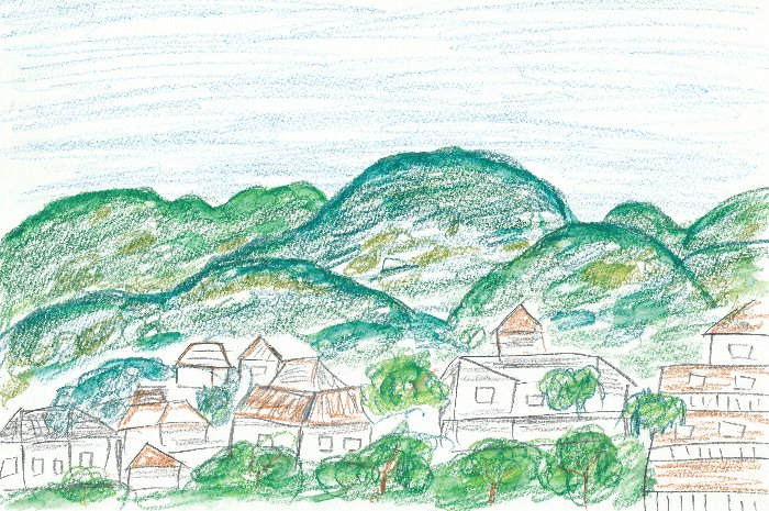 宇治の山は美しい 合掌 ありがとうございます。 1年ぶりに宇治別格本山盂蘭盆供養大祭に参列致しました。いつも宇治にお参りする度に思うのですが、この自然の美しさです。清らかな宇治川の流れ、そして山々の美しい風景、此処に住んでいる人達の親切な振る舞い等々。 今回はホテルの6階の窓から見渡す山と民家の風景を描いてみました。この風景を眺めていますと、心休まる思いがしますね。 見渡せば 緑の木々の 生い茂る 心休まる 宇治の山々