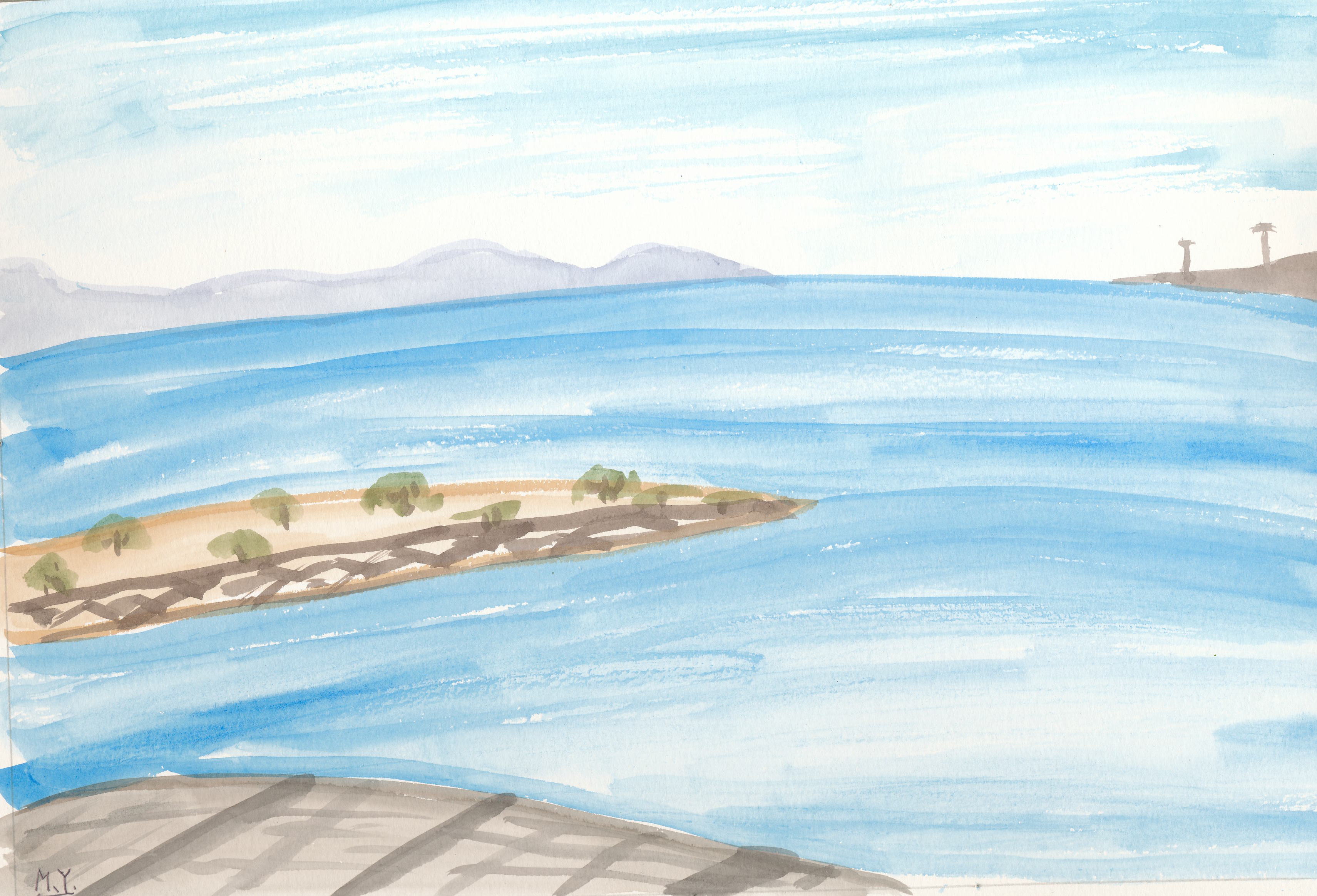 帰宅してから私は自転車でいつもの臨海公園にスケッチに出かけました。今日は風も殆ど吹かず良く晴れた日。すがすがしい気分で絵筆を執りました。世界の平和が海や空や地球いっぱいに広がっているような感じがしました。有り難いことです。平成22年・皇紀2670年・西暦2010年の良き年、世界の平和を祈念して絵筆を執った今日のスケッチでした。神様ありがとうございます。ありがとうございます。感謝合掌。