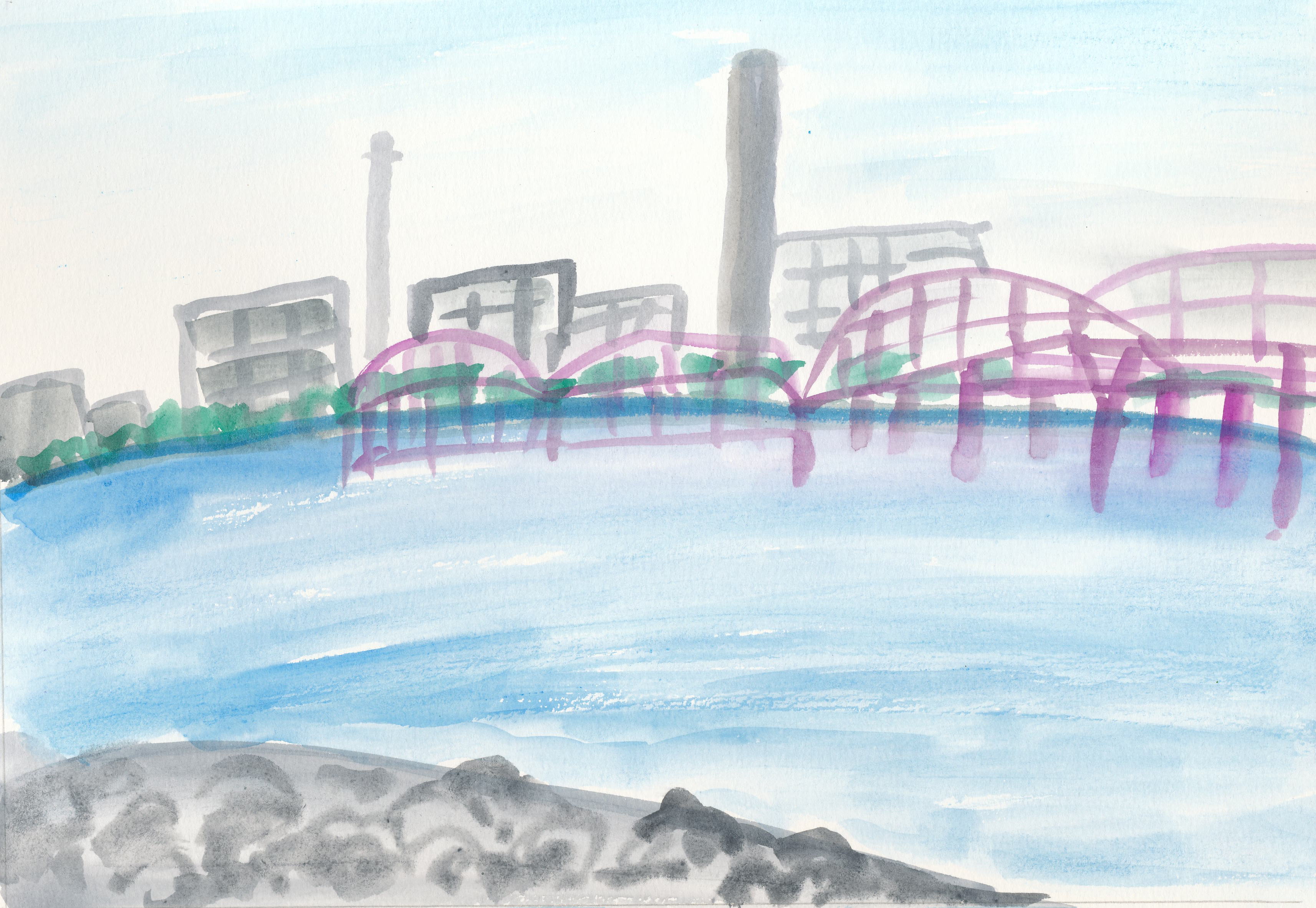 いつ来ても美しい海と川。何となく絵にしたくなる広い川。