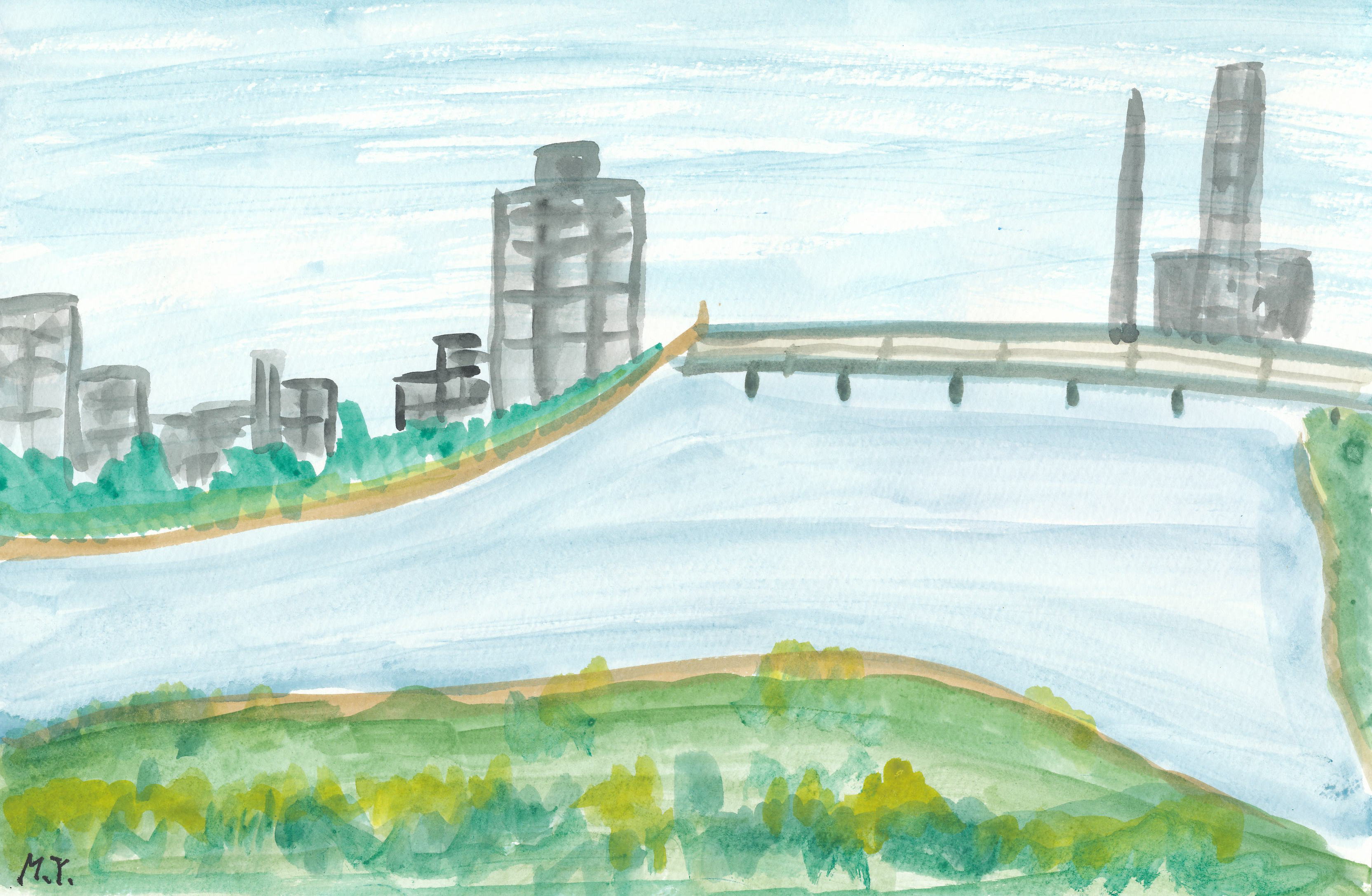 東京は中川の上流に自転車に乗って来ました。初めて観る風景です。此処は自宅から自転車で川の土手を走って約一時間の所です。まだまだ土手は続きます。休日の度毎にこの土手道を自転車で走って美しい風景を眺めたいと思っています。 限りなく 美しきかな この景色 絵筆をとりて ひたすら描く