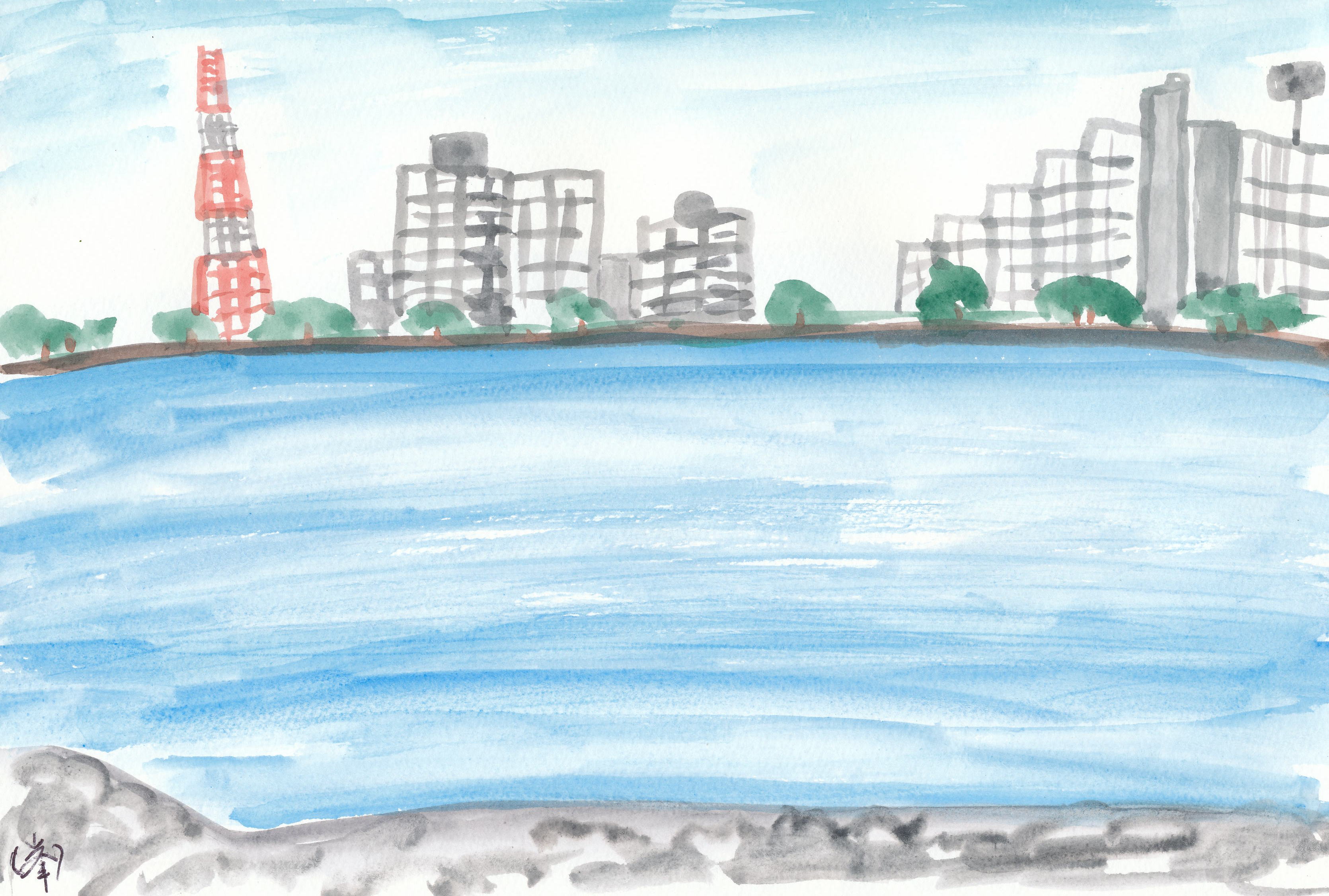 今日はいつも行く中川の川向こうに初めて行きました。長い橋(200メートルもあるか)を渡って向こう岸から眺めてみました。なにか壮大な感じのする風景でした。川の流れと岸辺の風景はいつ視ても雄大で美しいものですね。いつも僕はあの辺に自転車を停めて絵を描いているのですね。今日は少し寒さがやわらいでいて、散歩している人もいました。それにしても中川の川の流れは美しいですね。飛び込んで泳ぎたくなりましたがやめました(笑い)。