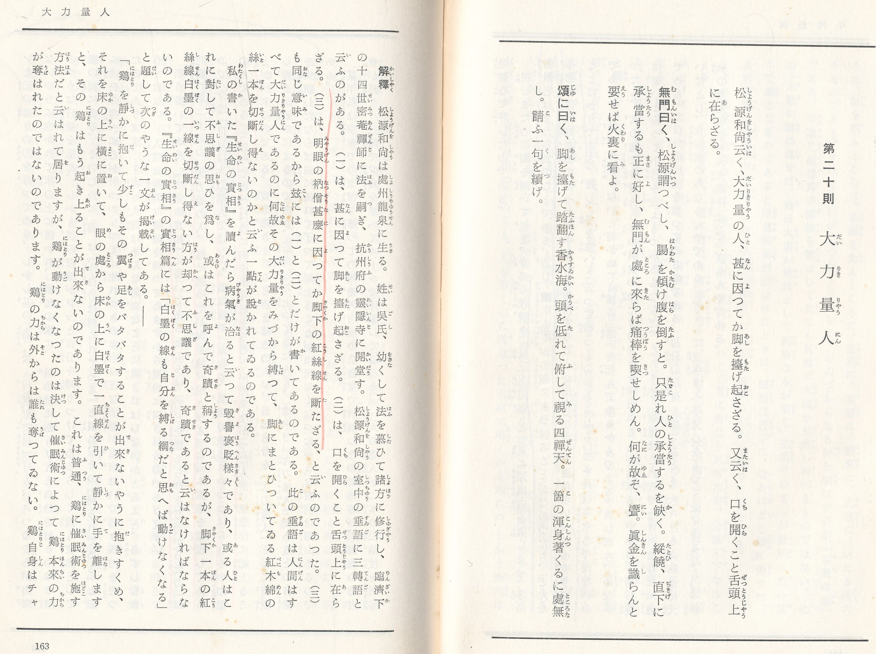“『生命の実相』に書いてあるところは、殆ど全巻あらゆる方面から此の『無門關』第二十則の「大力量の人、甚に因ってか脚を擡げ起こさざる」と云ふ真理を道破してあるので、今迄「自分は大力量人ではない。脳溢血や、食物や、気温の変化にやっつけられる小力量の人である」と思っていたために病床から起上ることが出来なかった人が、無造作に起上ることが出来るのである。ーーーー」”