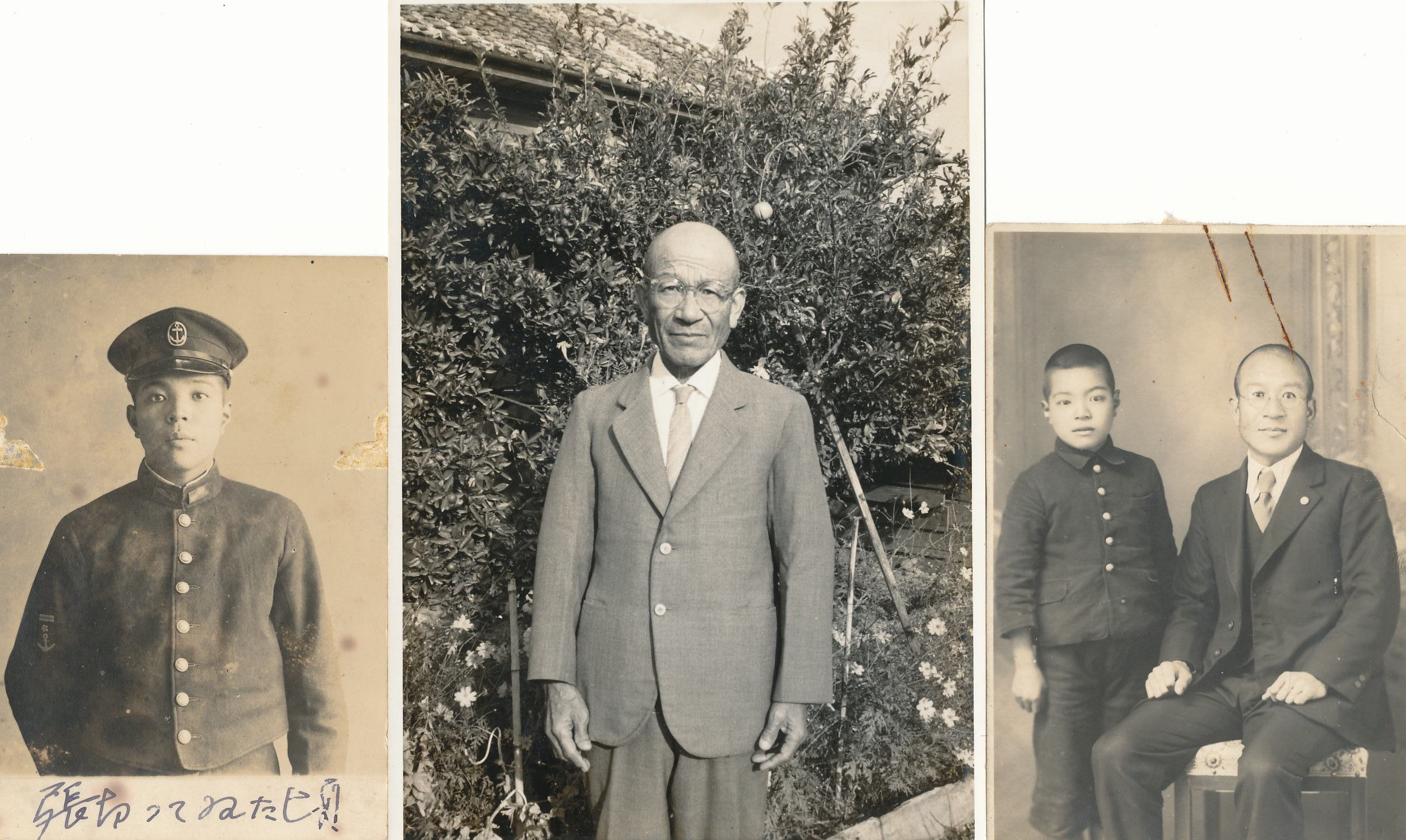 合掌 ありがとうございます。 偉大なる“父”です。 この写真は父が宮崎県の住吉小学校の校長先生をしていたとき、僕は小学校に新一年生で入学しました。その時の記念写真です。 そして僕も大きくなって、旧制中学4年生の時、志願して予科練に入隊したときの写真です。 大いなる 父の御許に はぐくまれ ただ有り難く 時は過ぎゆく