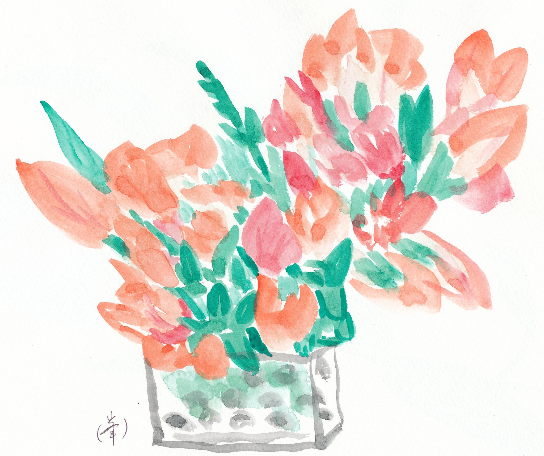 飛田給道場に来ますと、いつもこの美しい花に出会うのです。練成会では左脳の智慧で人間神の子の講話をしますが、右脳の感覚で花の絵を描きたくなるのです。まことにまことに有り難い神の子の人生であります。ありがとうございます。ありがとうございます。