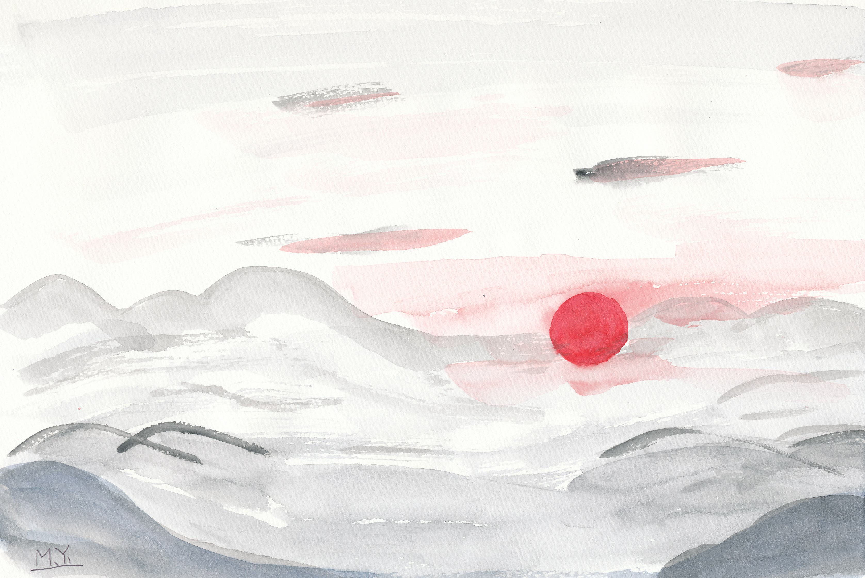 山上5合目から見下ろす雲の彼方から、真っ赤な太陽が登り初めました。