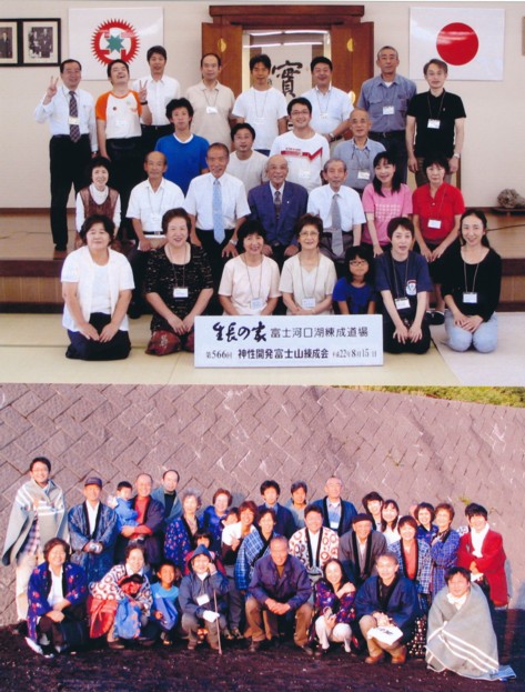 世界の平和に貢献する偉大なる使命を神様から与えられた神の子・練成員たちです。この写真は、一つは富士山五合目で御来光を待つ時、もう一つは練成道場の大拝殿での祈念写真です。皆さんが本当に素晴らしい美しい顔をしていらっしゃいますね。