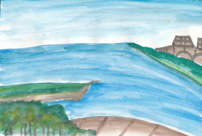 こんなことを考えながら海辺を歩いていますと、涼しい風が吹いてきて心が安まりますね。ちょっとスケッチしてみました。