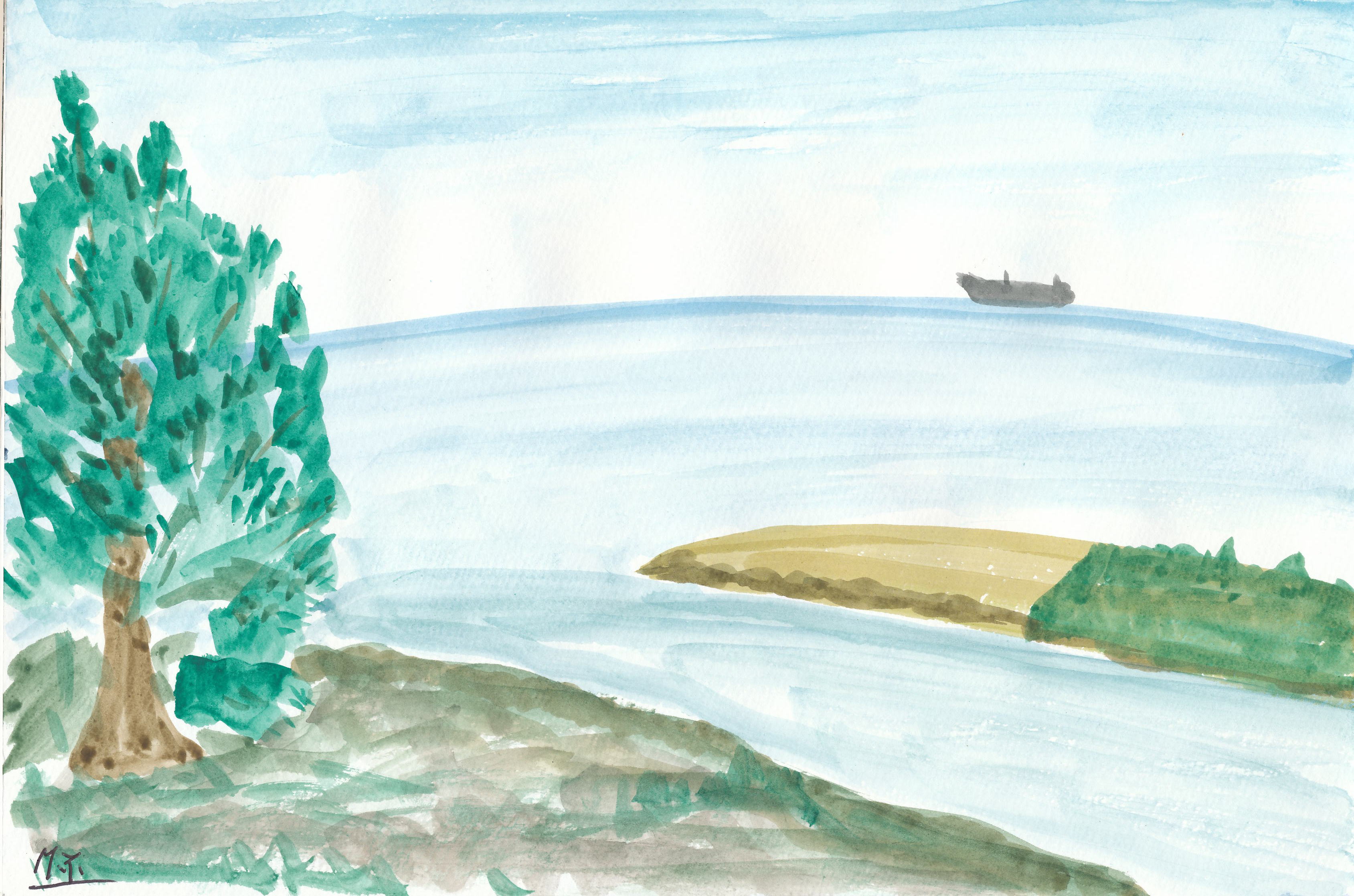 いつ来ても美しい風景ですね。自転車に乗ってこの近くに来ますと、どうしても絵に描きたくなるのです。この付近の風景を僕は何十枚描いたか、描いても描いても、描けば描くほど、描かずにはいられないのです。考えてみますと、この付近は自動車では来れない所です。中川の堤防は自動車は通れないのです。自転車か歩きかです。マラソンしている人(老若男女)もいます。僕は自転車に乗って我が家から約30分の所です。休みの日には必ず行きたくなるのです。そして絵に描きたくなるのです。嗚呼美しい海と空、大自然!!