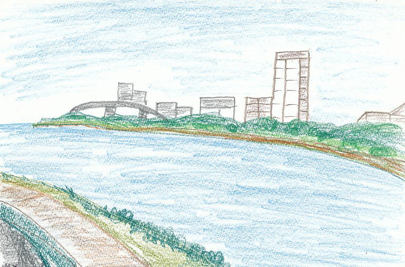 はるかに見える美しき景色。自転車に乗って此処へ来ると、この景色の美しさに見とれて絵を描きたくなるのですよ。この景色、何枚描いたことでしょう。此処は「中川」の河口です。いつ来てもすてきな景色ですね。 限りなく 美しき哉 この景色 心安らぎ 天国を想う