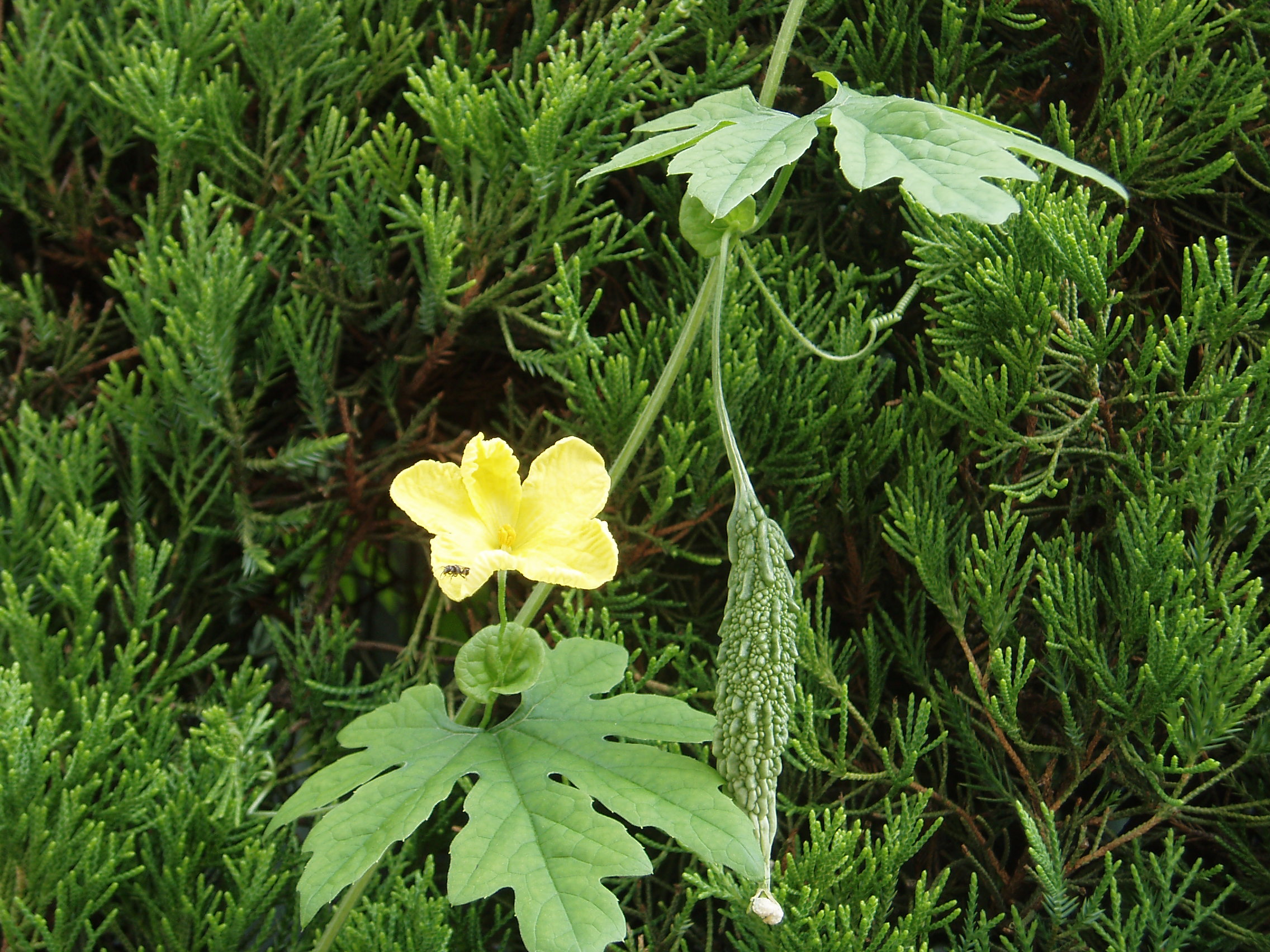よく観ますと此処にこんなに美しい花があることに気がつき心が感動しています。美しい花、その名は”ゴーヤ”、この花にこの名をつけたのは一体誰でしょうか。
